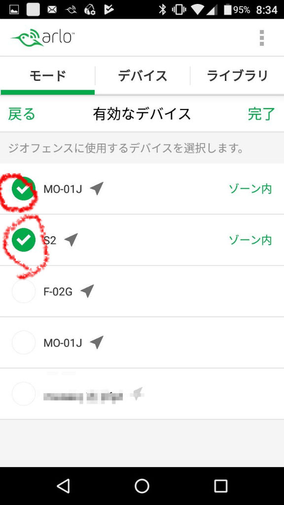 ジオフェンス機能に利用する端末を選択する。